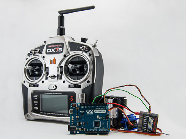 The goal for one Pattern Friday was to be able to communicate wirelessly without using common technologies like Bluetooth, wifi or cellular data. So, since we were already working on a project that involved radio transmitters, we decided to try and reverse-engineer the 2.4ghz signal from a Spektrum receiver.